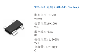 该ESD静电放电抑制器电路由TVS和普通二极管组成,提供了雷电过电压和静电过电压保护,满足GR-1089-CORE对浪涌的测试要求。防静电能力:最小8kV(接触)和15kV(空气)的静电冲击。