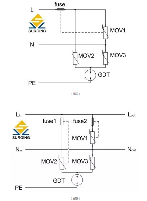 · 在差模防护中,采用压敏电阻(MOV),响应时间快,将L线与N线之间的过电压钳制在设备可耐受范围之内;